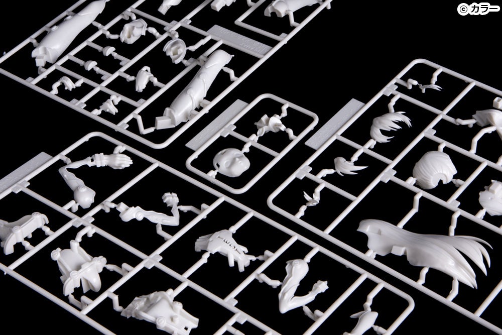 カラーキットと同様に繊細な造形をプラキットへ再現するとともに、スカルプターズホワイトでは原型そのままの彫刻が深く施された顔パーツと単色成形で、より造形に特化した魅力を楽しむことができます。