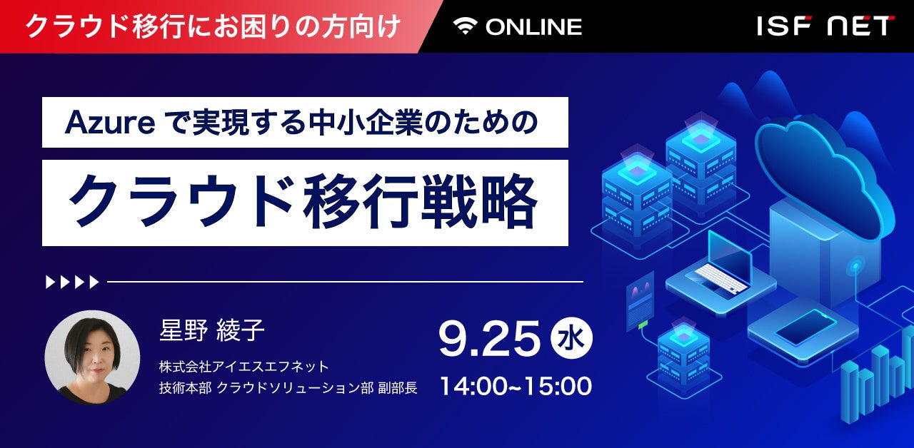ITインフラソリューションを中心に、クラウド環境やネットワークシステムの構築・保守・運用におけるサービスを提供する株式会社アイエスエフネットは、2024年9月25日の日程にて、「Azureで実現する中小企業のためのクラウド移行戦略」セミナーを開催いたします。