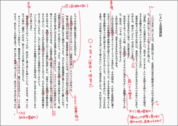 冒頭の1,000⽂字程度を添削。出版のルールに沿って、誤字脱字や表記の統⼀、文章表現、数字や記号の表記など、本づくりのプロならではの観点からアドバイスいたします。原稿の見直しを進めるうえできっとお役立ていただけますよ。
