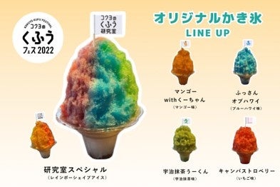 期間中、9月3日、4日の2日間数量限定でクールダウンできる5種のかき氷を販売します。くふう研究室のメインキャラクターである「トリオ・ザ・くふう」になぞらえたマンゴー、ブルーハワイ、宇治抹茶のほか、「キャンパストロベリー」「研究室スペシャル」などをご用意します。