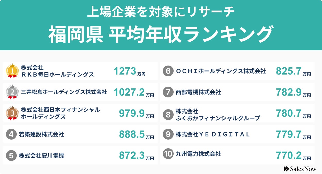 【福岡県】上場企業平均年収ランキングTOP10!/SalesNow DBレポート