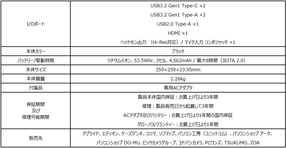 本体にはBIOSパスワードロックやストレージの暗号化機能を使用する際に必須となるハードウェアTPM2.0を内蔵。ハッキングやデータ漏洩など万が一のリスクに対するセキュリティ機能を搭載し、安心して持ち運ぶことが可能。また、パスワード入力不要で簡単・安全にWindowsへログインできるWindows Hello対応指紋認証リーダーを搭載。マスク着用時でもワンタッチで素早くログインできます。