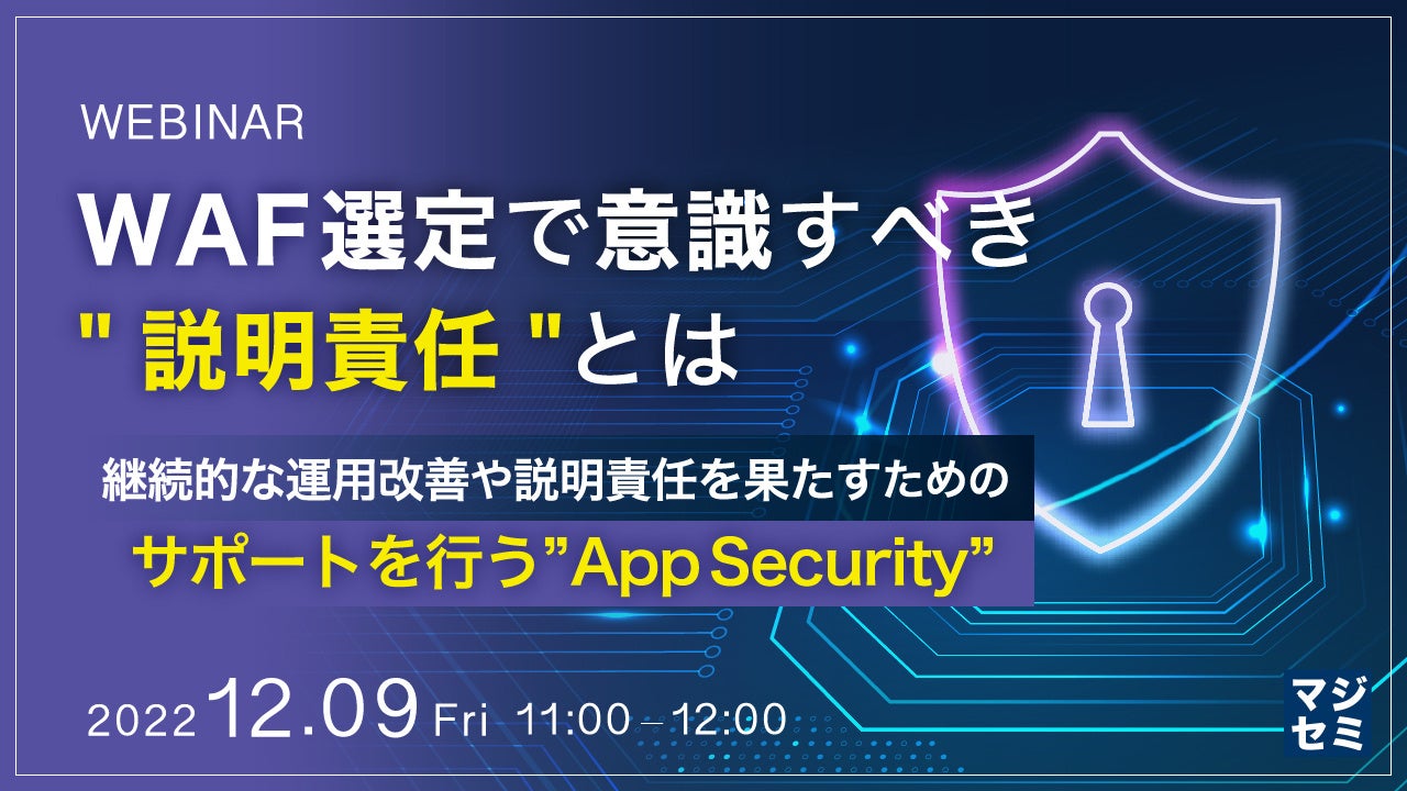 マジセミ株式会社はWAF選定で意識すべき"説明責任"とはというテーマのウェビナーを開催します。