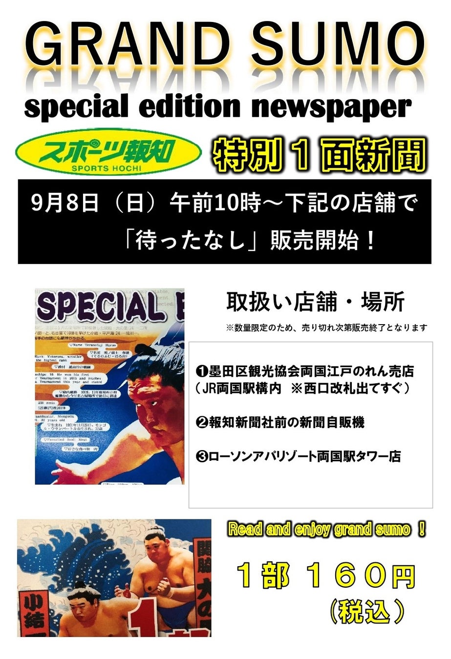 スポーツ報知「大相撲特別1面新聞」9月8日から発売