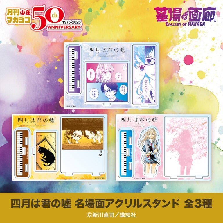 作中の名場面を再現した人気のアクリルスタンドが登場!鍵盤モチーフの台座から有馬公生と宮園かをりの青春物語が、まさに音楽のようにアクリルスタンドで立ち上がる!