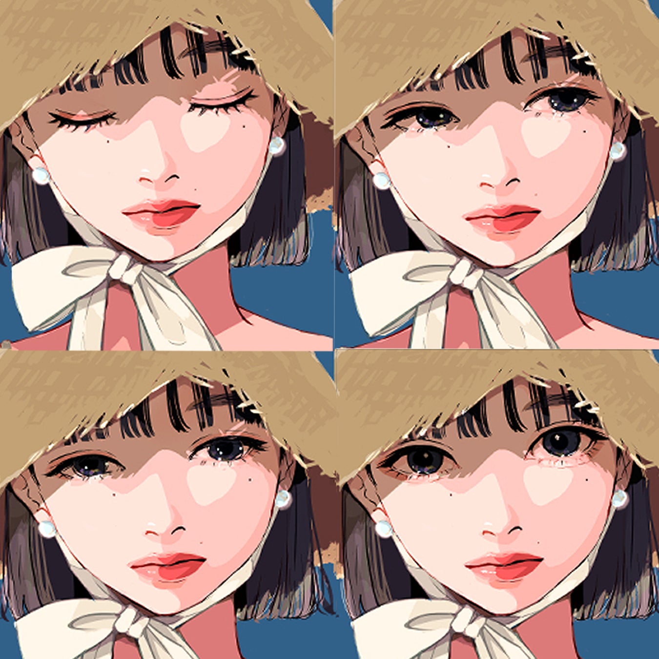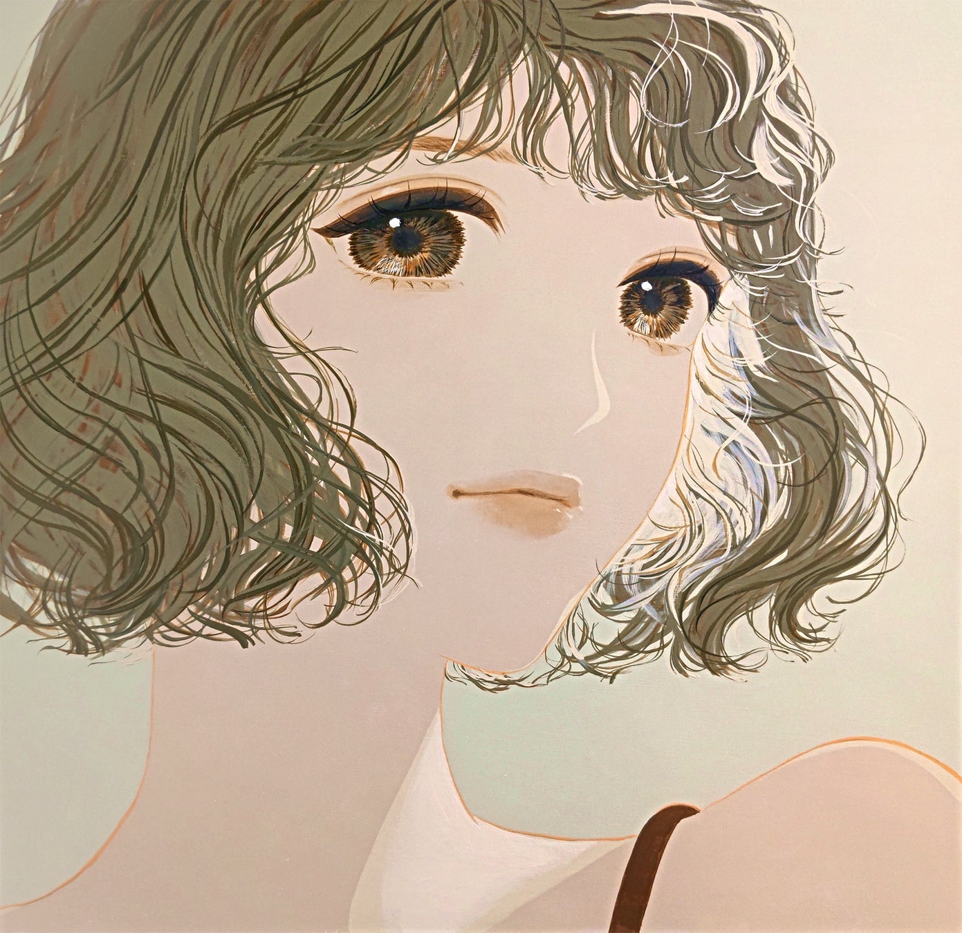 わかりやすい「カワイイ」ではない、感情を読み取りづらい顔。それでいて、化粧、アクセサリー、ファッションを含めて女の子の顔を描くことを楽しんでいる。いずれの作品からも複雑な感情をもちつつも女性なるものへの没入、充実が伝わってきます。