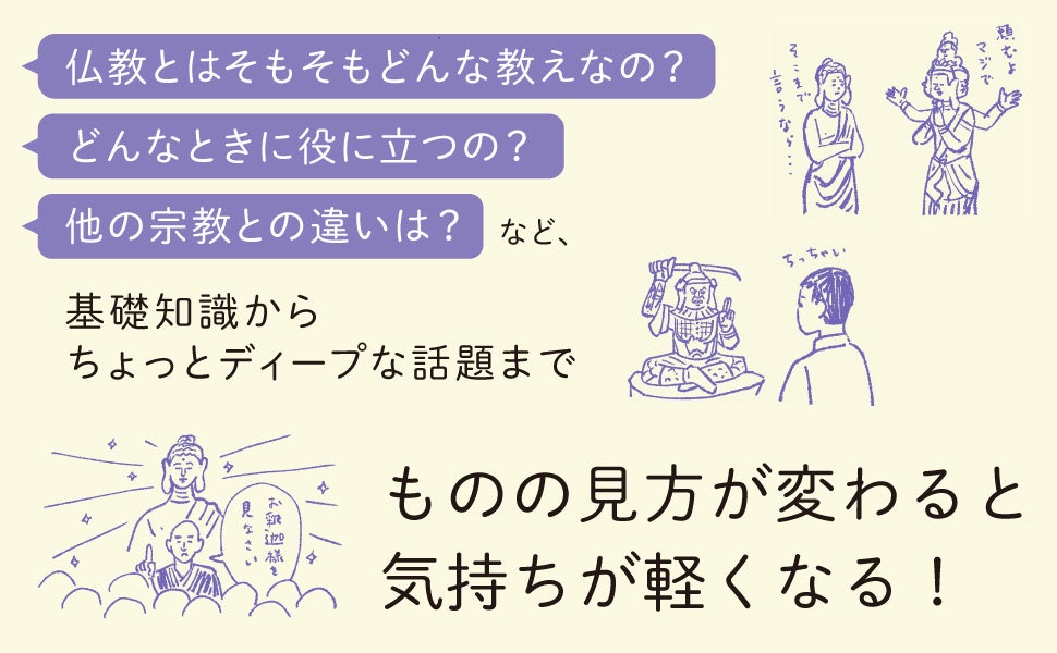 「仏教とはそもそもどんな教えなの?」「どんなときに役に立つの?」「他の宗教との違いは?」「日本って葬式仏教のイメージが強いけど、本当のところはどうなの?」「おなじみの仏教行事の意味は?」など、基礎知識からちょっとディープな話題まで、ざっくりまとめられています。