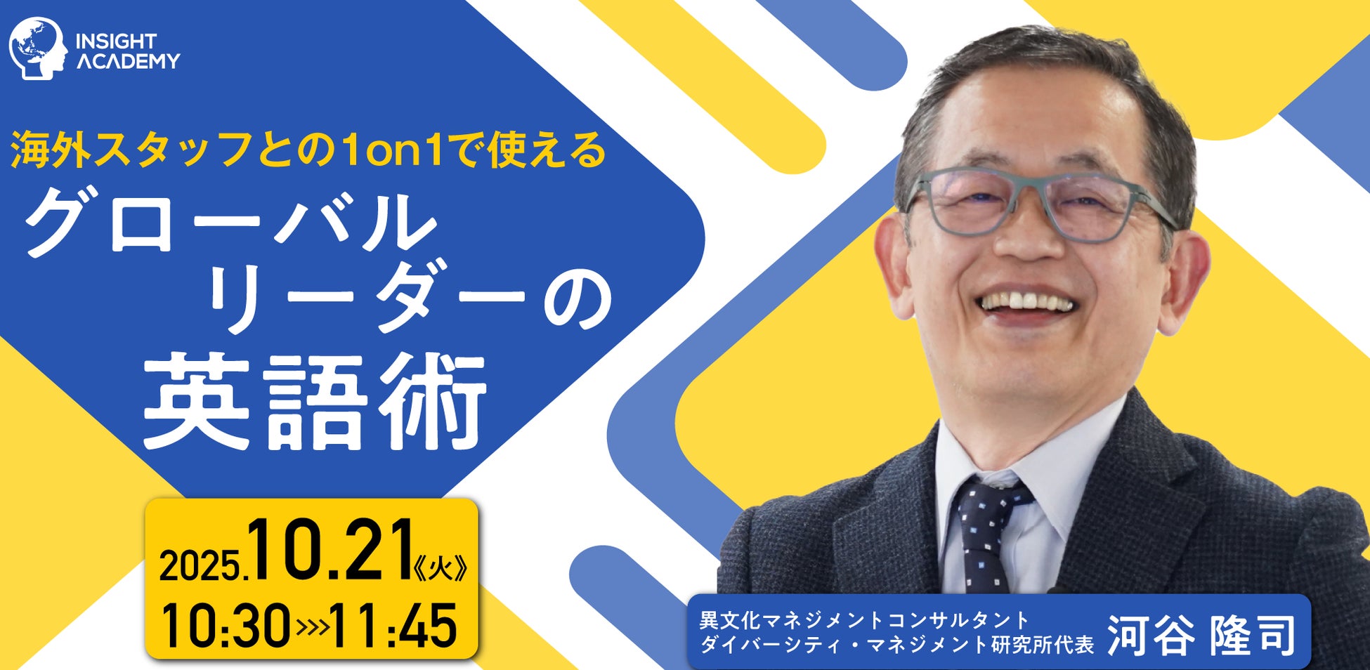 グローバル⼈材育成・研修業を⼿掛けるインサイトアカデミー株式会社(本社:東京都港区新橋、代表:金 珍燮)は、無料webセミナー「海外スタッフとの1on1で使える『グローバルリーダーの英語術』」を開催致します。
