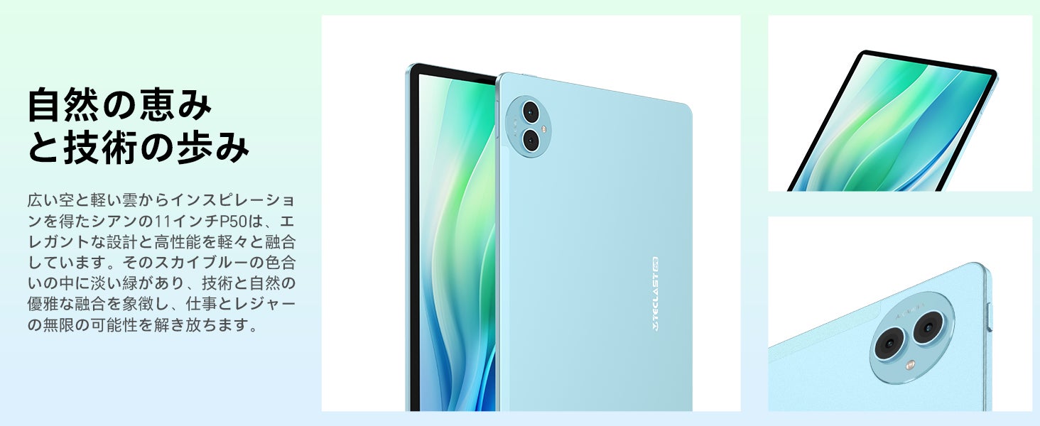 広い空と軽い雲からインスピレーションを得たシアンの11インチP50は、エレガントな設計と高性能を軽々と融合しています。そのスカイブルーの色合いの中に淡い緑があり、技術と自然の優雅な融合を象徴し、仕事とレジャーの無限の可能性を解き放ちます。