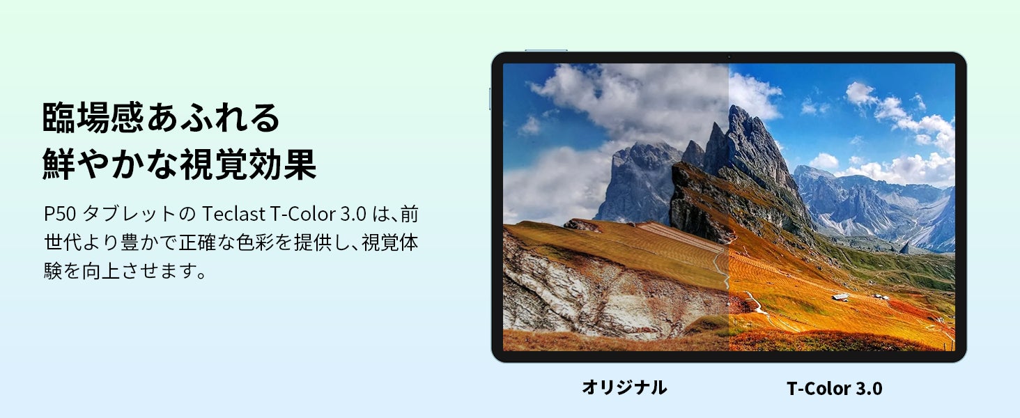 新しいTeclastの11インチタブレットは、10.1インチより15%大きい表示面積を持ち、より多くの視覚空間を提供し、より多くの輝きを生み出します。 T-Color 3.0は、前世代より豊かで正確な色彩を提供し、視覚体験を向上させます。