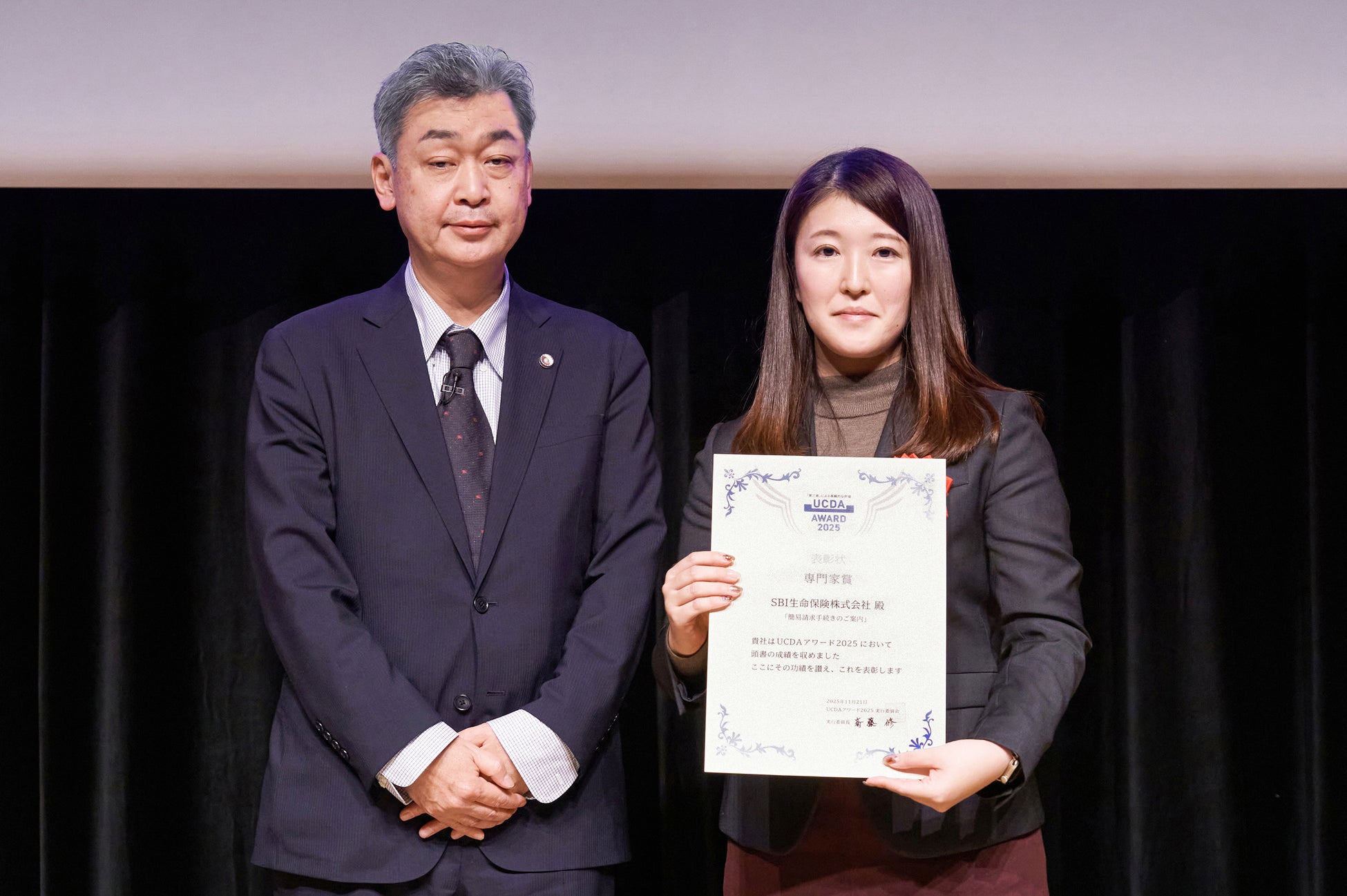 SBI生命保険株式会社(本社:東京都港区、代表取締役社長:篠原 秀典、以下「SBI生命」)は、このたび、一般社団法人ユニバーサルコミュニケーションデザイン協会(以下、UCDA)が主催する「UCDAアワード2025」において、情報品質向上の取組みが評価され、「企業総合賞シルバー」と「専門家賞」の2つの賞を受賞いたしました。