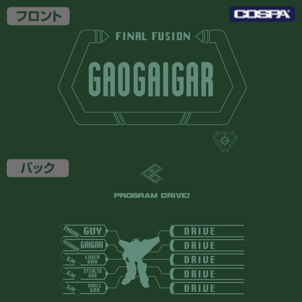 最後のファイナルフュージョン Tシャツは、主人公が勇者王であるスーパーメカノイド「ガオガイガー」に変身する、ファイナルフュージョンシーンを盛り込んだデザインTシャツ。ファンとTシャツがドッキングするイメージでデザインされた一着となっている。