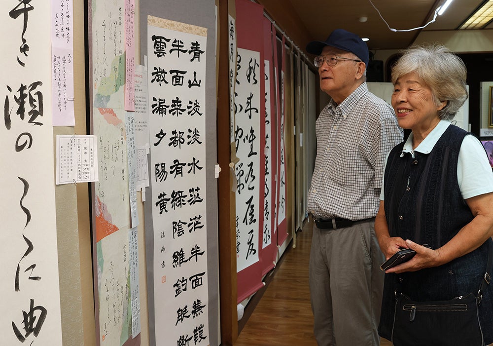 この作品展は、高齢者が趣味で制作した作品を展示することで、創作の喜びと高齢者同士の交流の輪を広げ、高齢者の生きがい向上につなげるため、例年開催しています。今年は、市内在住の60歳以上が制作した、書道や陶芸、絵画、写真、俳句、手工芸など様々なジャンルの作品、約400点を展示。長寿介護課の担当者は「この作品展が高齢者の生きがい向上や交流の輪を広げるきっかけになれば嬉しい」と話していて、訪れた人は「どの作品も見ごたえがあって素晴らしかった。これを機に、新たな趣味にチャレンジをしてみたい」「力強く書かれた書道の作品を見て、生きる元気をもらえた」と言いながら、作品を楽しんでいました。
