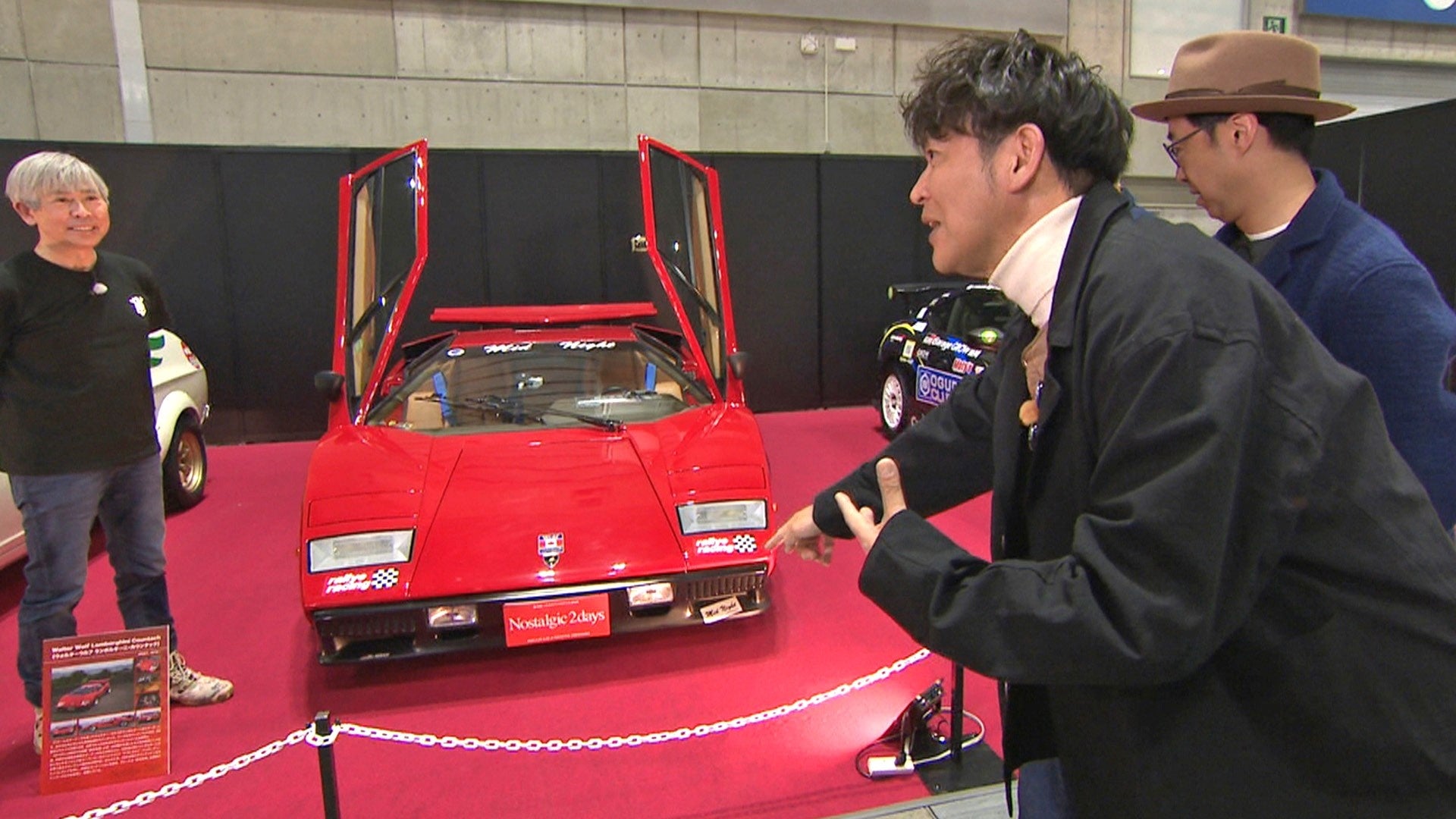 最初に登場したのは、昭和の少年たちの心をわしづかみにしたスーパーカーブームでも人気No.1だった1台。ランボルギーニ カウンタックの真っ赤なボディーに、空高く上がるシザーズドアに一同、大感激!岡田さんは「スーパーカーブームの時、ようこういう柵があって、みんな写真撮ってたの」と、憧れの1台を目の当たりにした少年時代を回顧。矢作も「卒業文集、このカウンタックを上から(見た)のを描いているからね」と続いた。さらに、このカウンタックは世界に3台しかないというレア中のレアカーだと知らされる。その理由は?