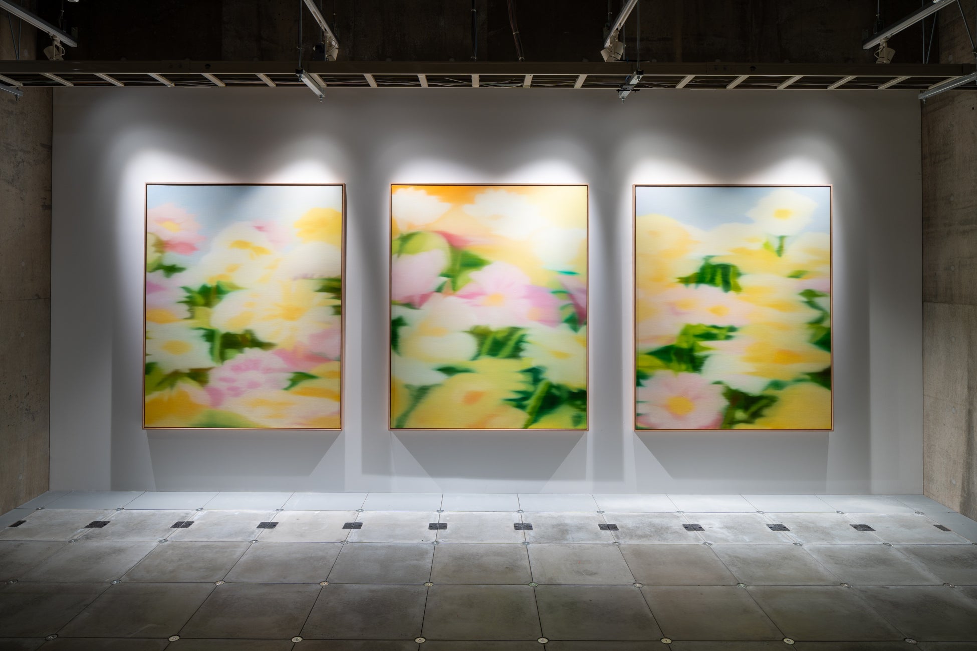 また地上3階、4階のフロアでは、SHUN SUDOのアイコンとなっているBUTTON FLOWERの作品や山口幸士が描く花畑をモチーフにした作品が展示され、またそのフロアの窓からは工事中の階段の足場や作業する人の姿も見られることで、アートと工事現場が同じ作品であるような今ここでしか体験できない空間を楽しんでいただけました。