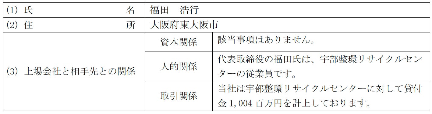 宇部整環リサイクルセンターが保有していた焼却炉建設予定地の土地建物については、ワイハウの宇部整環リサイクルセンターへの貸付金1,004百万円を担保するために抵当権を設定し、宇部整環リサイクルセンターの事業の進行に応じて債権回収をして参ります。また、宇部整環リサイクルセンター建設のための第13回乃至第15回新株予約権による調達資金の資金使途は、既に開示済みのワイハウ運転資金約5億円の資金使途変更のほか、今後の企業再成プラットフォーム構築・拡大のためのM&A費用として資金使途変更することも3月25日の取締役会で併せて決議致しました。今後ワイハウは、岩尾俊兵社長の下、さらに事業を再構築し、健全な財務体質の企業として時価総額の増大を目指し、株主様などのステークホルダーの方々の利益を拡大することを目指す方針です。