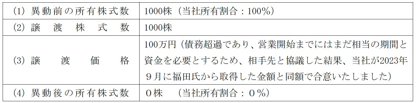 子会社の異動(株式譲渡)及び事業の廃止並びに資金使途の変更に関するお知らせ