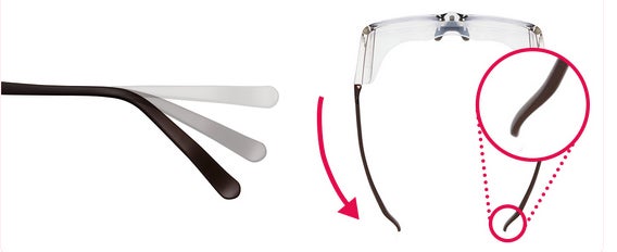 かかり具合を自分で調整できるラバーテンプル(つる)。