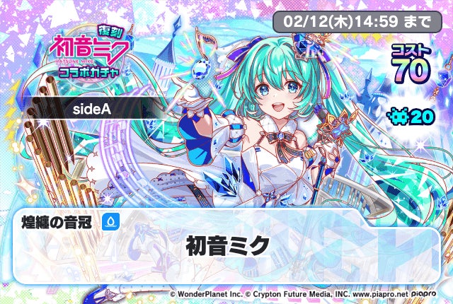 モバイルゲーム事業を行うワンダープラネット株式会社(本社:愛知県名古屋市、代表取締役社長CEO:常川友樹、東証グロース:証券コード4199、以下当社)は、iOS/Android端末向けに配信中の『クラッシュフィーバー』において、2026年1月29日(木)より、『クラッシュフィーバー』×『初音ミク』コラボの開催が決定したことをお知らせいたします。