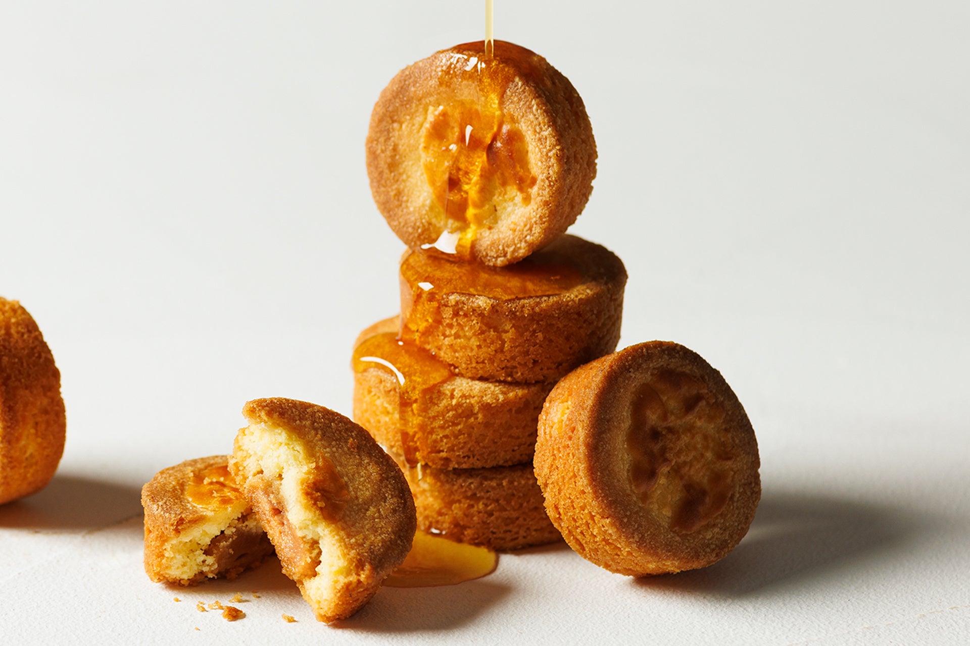 メープルシロップがふんわり香る、まるで焼き立てフレンチトースト!パン粉を入れてふんわりもっちり焼き上げた、可愛いパン型フィナンシェです。