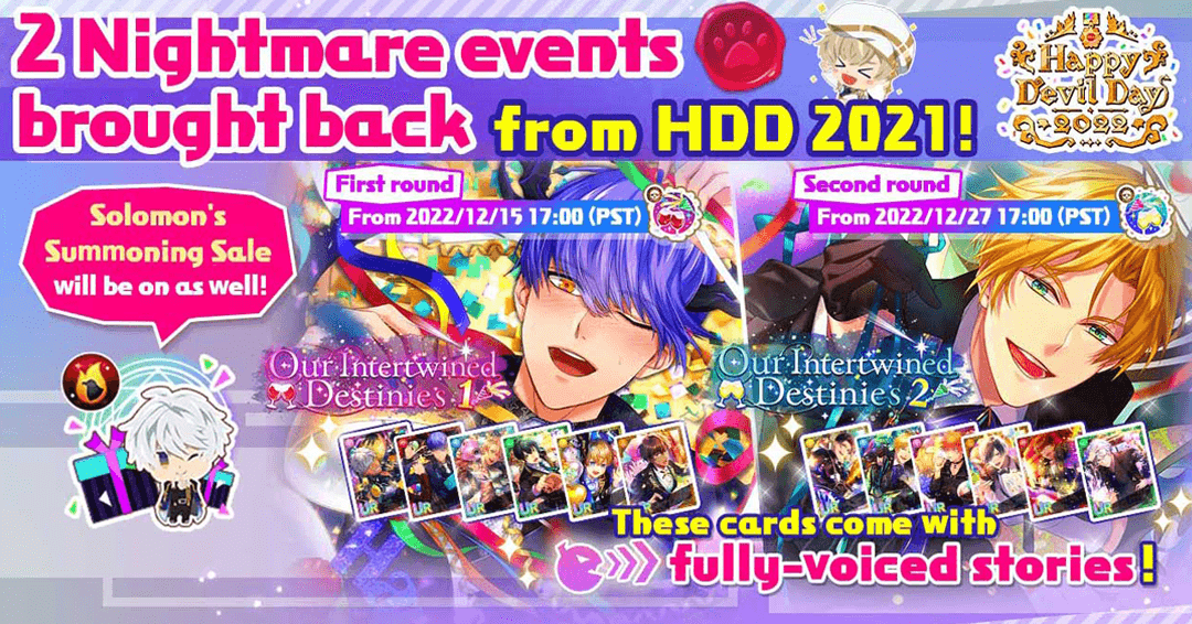 ■超BIGイベント「Happy Devil Day 2022」開催!!メインイベントの「ナイトメア 三界をつなぐパーティーの前に」では第1弾、第2弾を合せると、ナイトメア(ガチャ)がなんと最大200連無料に!他にも限定イベント多数実施