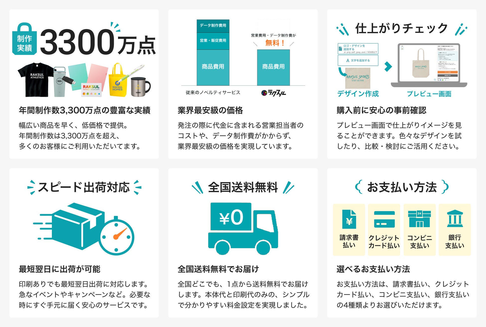 ■「ラクスル ノベルティ」サービスサイトとお問合せ先