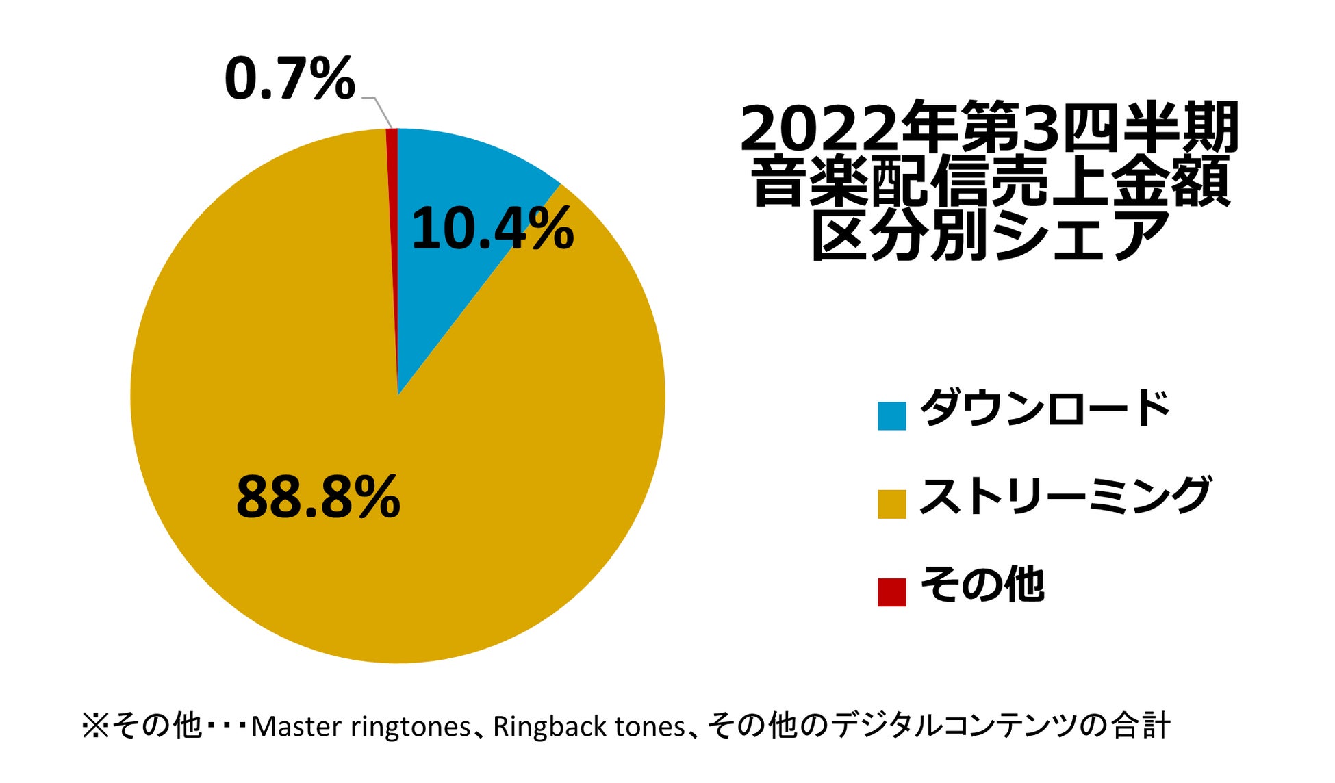 2022年第3四半期の音楽配信売上は261億円、ストリーミングは232億円でシェア9割に迫る