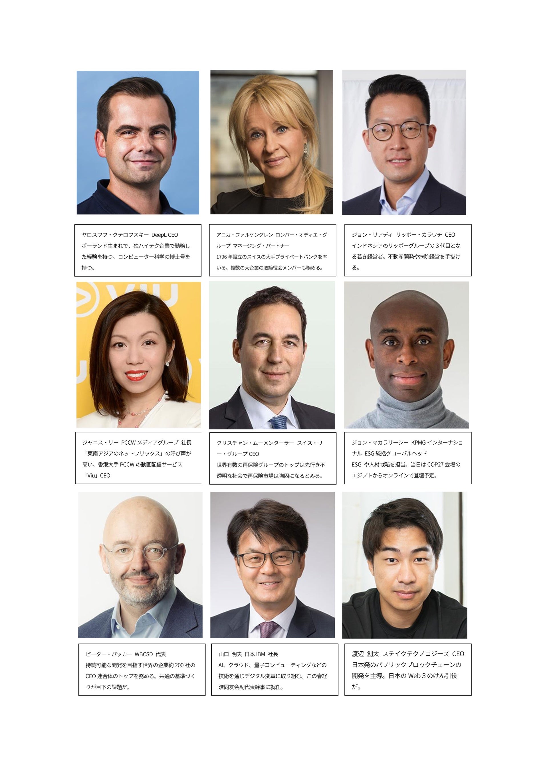 - 主催: 日本経済新聞社、IMD、ハーバード・ビジネス・スクール