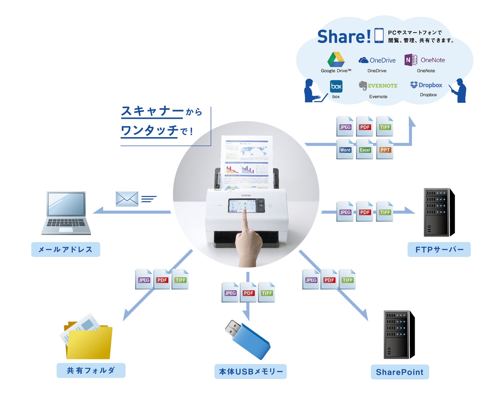 ※4:ADS-4300Nは、クラウドサービスやスキャン to Eメール送信、スキャン to SharePointには非対応。