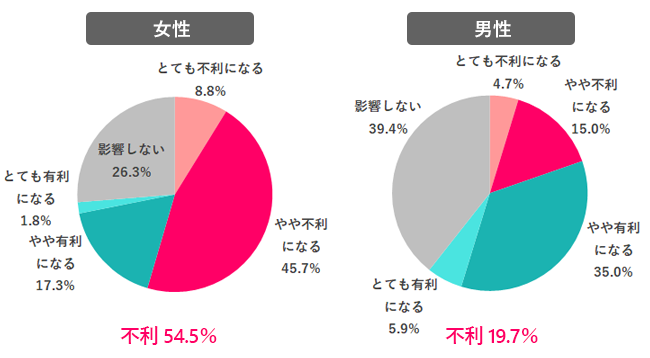 ジェンダーギャップが理由で転職を考えた女性は、男性の2.5倍。自身の性別について、女性は職場で「不利になる」、男性は「影響しない」/『女の転職type』が働く男女にアンケート【第64回】