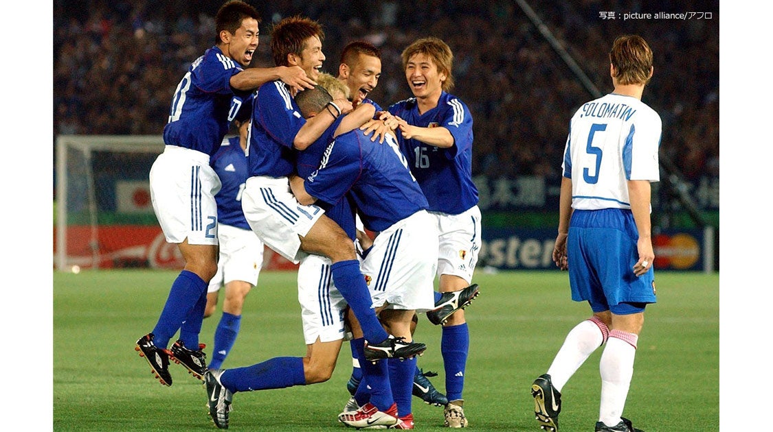ジョホールバルの奇跡を起こして初出場を決めた1998年大会は、3戦全敗で世界との差を痛感する中で、初ゴールを記録するなど未来への一歩を踏み出します。自国開催となった2002年大会は、初めての勝ち点、勝利、そしてグループステージ突破と新しい景色を見せてくれ、日本中がサッカー一色に染まります。第2戦ロシア戦でのテレビ視聴率は、驚異の66.1%を記録しました。