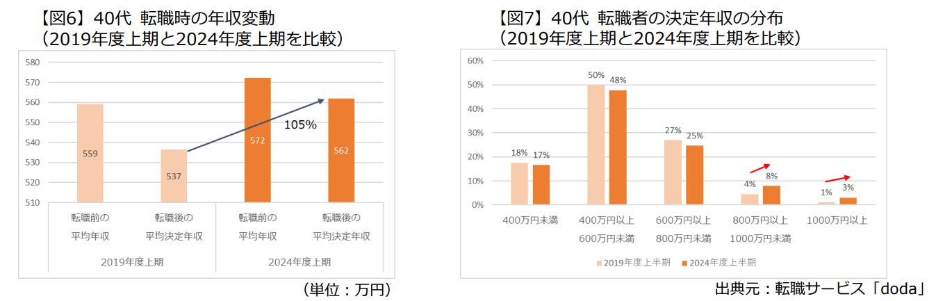 対象:2019年度上期(2019年4月~9月)と2024年度下期(2024年4月~9月)にdodaエージェントサービスを利用して転職した個人