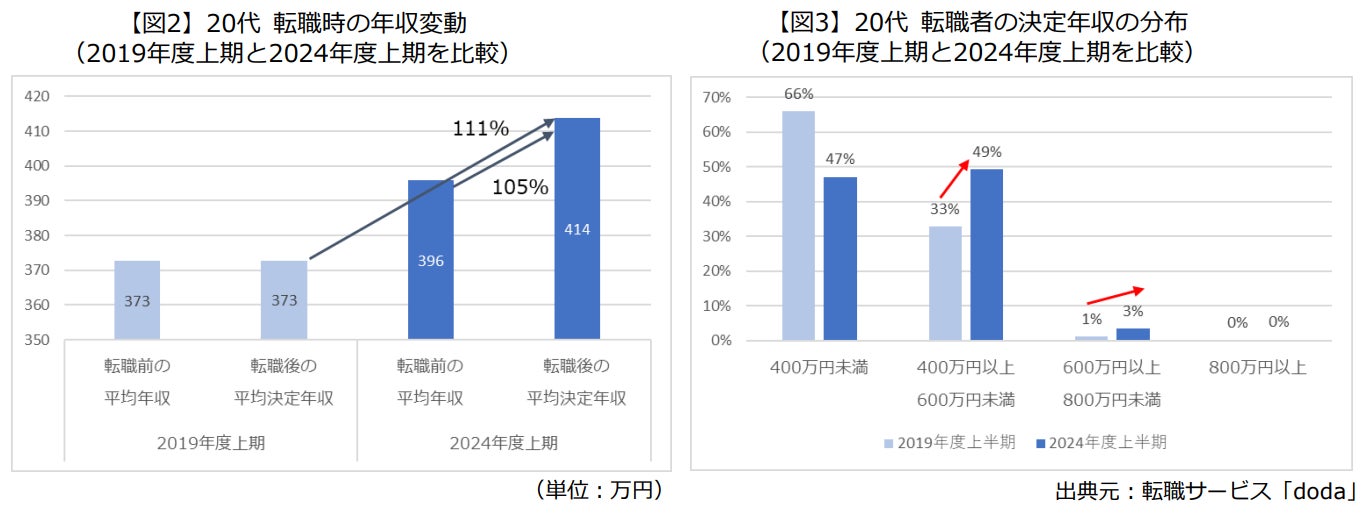 ~2024年度上期 20代の平均決定年収額は19年度同期比で111%アップ。30代40代も105%以上の上昇~