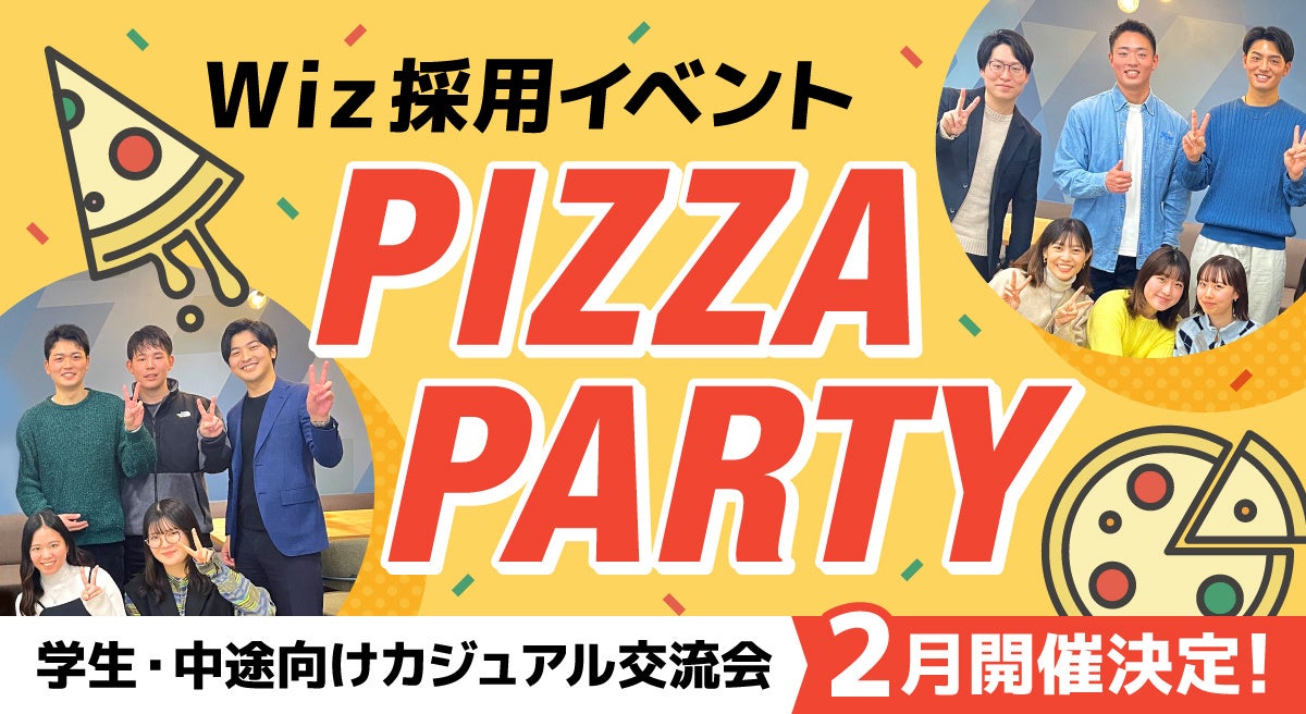 ITの総合商社・株式会社Wiz(本社:東京都豊島区、代表取締役社長:山崎 俊、以下「Wiz」)は、学生・中途採用向けのカジュアル交流会「ピザパーティー」を開催いたします。2月は、学生向けに2/6(火)札幌・2/9(金)福岡・2/14(水)名古屋・2/16(金)東京/大阪会場にて、中途採用向けに2/7(水)・2/21(水)東京会場にて実施予定です。