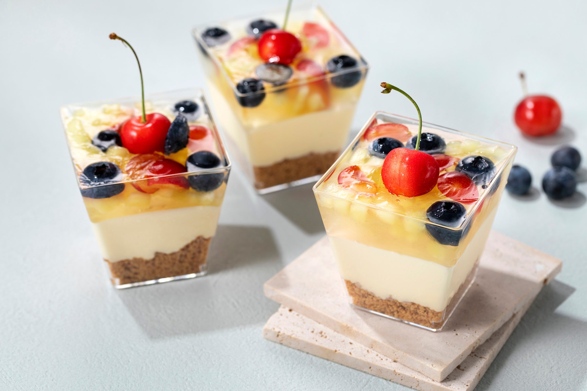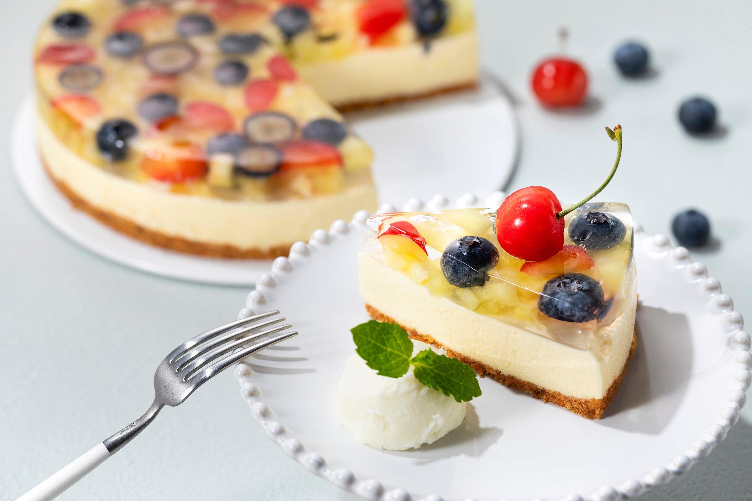 鶴岡市産の旬のさくらんぼや庄内砂丘メロン、月山高原ブルーベリーを贅沢に使用してレモンゼリーで閉じ込めた、見た目にもキラキラと華やかなレアチーズケーキです。鶴岡市が誇る新鮮フルーツの味わいをご堪能ください。