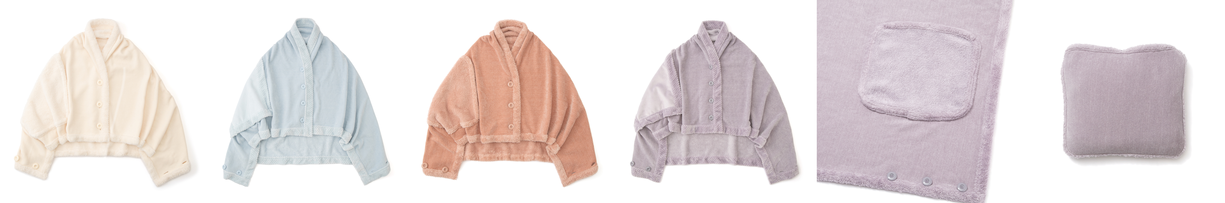 両面リバーシブルの4WAYポンチョです。もっちりとしたシェニール織の手触りと、ふわふわとした起毛生地の手触りをお楽しみいただけます。ポンチョ・ボレロ・巻きスカート・ブランケットと4通りの使い方ができて、ポケットに収納すればクッションとしてもお使いいただけます。Lサイズは端をジャガード生地に切り替えて、インテリアとしても馴染みの良いデザインに仕上げました。お家はもちろん職場や車内など、シーンに合わせて活躍するアイテムです。