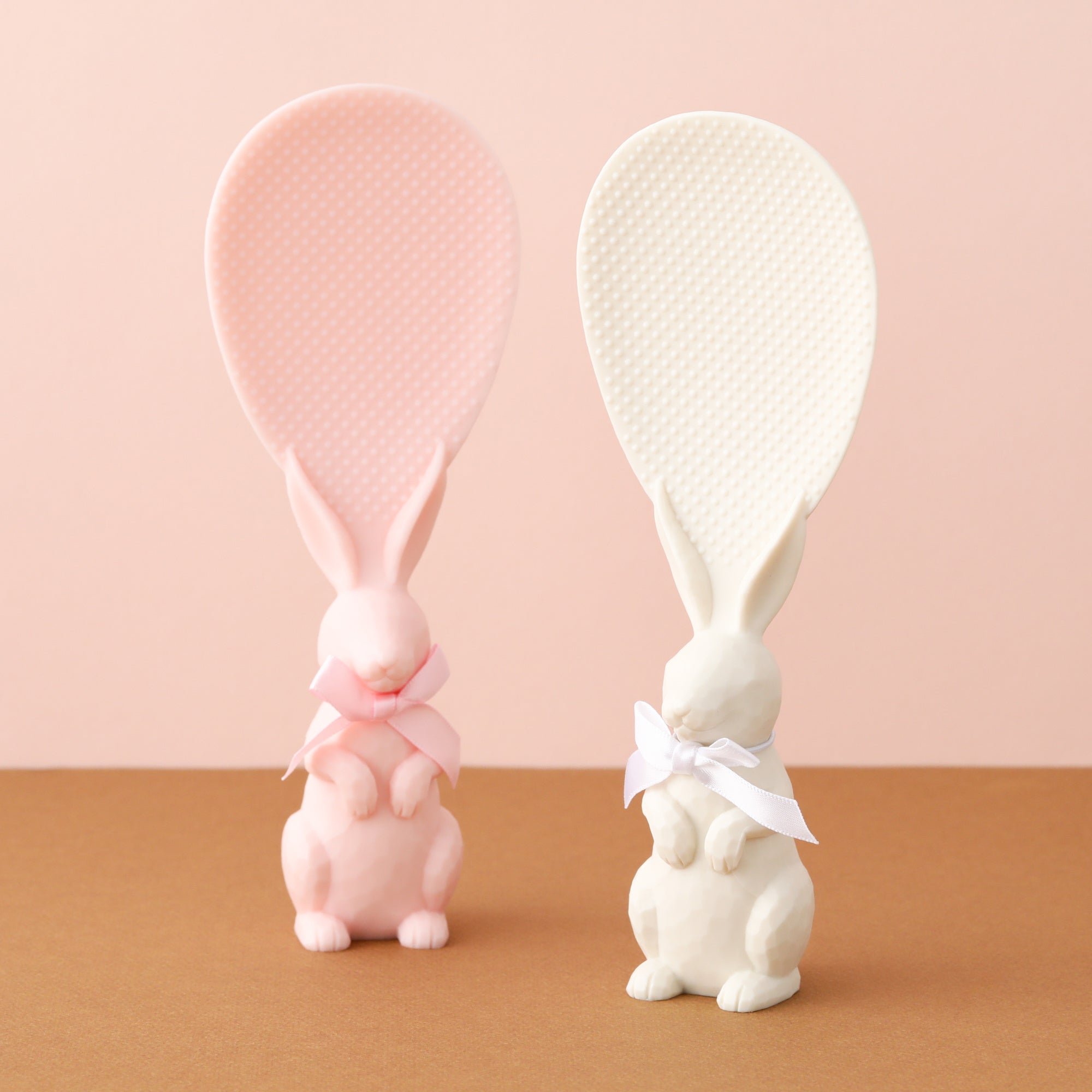 長きにわたり皆さまに愛される、うさぎモチーフの便利に使える立つしゃもじです。木彫り風のグリップはしっかりと握りやすく、使わないときは自立するので保管スペースをとりません。キッチンに置いておくだけで、いつでもガーリーな雰囲気を演出でき、インテリアとして飾ることができます。さらに、しゃもじの素材はポリプロピレンを採用しており、表面にはエンボス加工が施されているので、米粒が取れやすく後片付けも簡単です。新生活のキッチンアイテムとしてはもちろん、動物モチーフの親しみやすいデザインで、小さなお子さんとの料理時間にもぴったりです。首元はリボンでおめかししているので、一人暮らしを始める友人やお世話になっている方へのちょっとした年始のご挨拶ギフトにもぴったりです。
