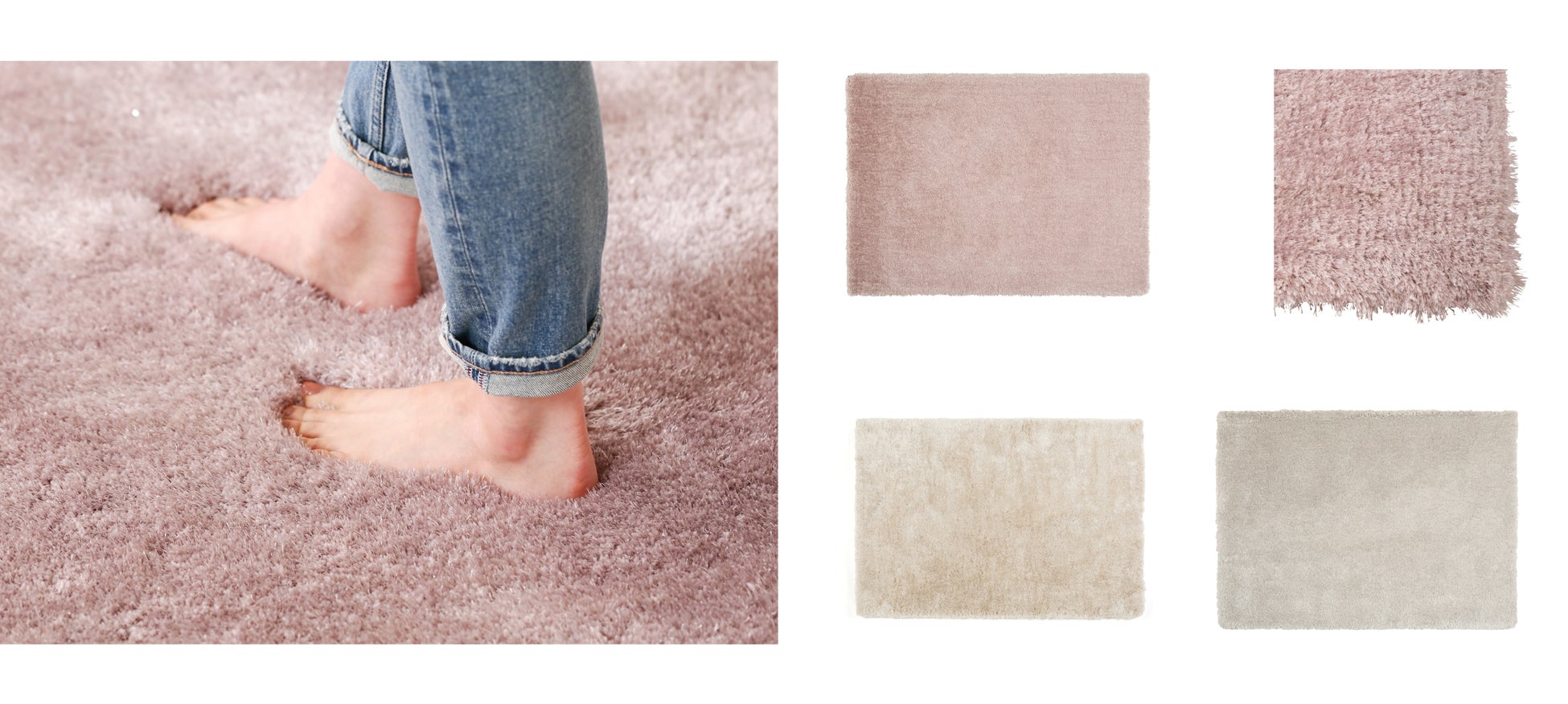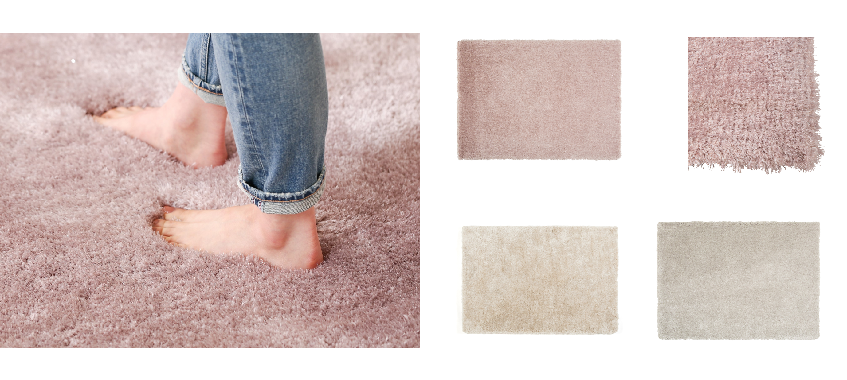 ラメ糸が上品にきらめいて高級感のある空間を演出する「カステ」シリーズです。3色の太い糸と3色の細い糸と1色のラメ糸を使用しており、スタイリッシュながらも繊細で柔らかな感触に仕上げました。穏やかなトーンのカラーリングはインテリアコーディネートに取り入れやすく、お部屋を上質な雰囲気に彩ります。毛並みや光の加減によって繊細な表情の変化を楽しめます。裏面に厚さ1.8cmの低反発素材をプラスした、もっちりとした弾力と肌触りがやみつきになる低反発のラグマットは、長時間ラグの上で過ごされる方におすすめです。ふわふわで柔らかな踏み心地が特徴で、ラウンド型や一人暮らし向け、ファミリー向けまで幅広いサイズをラインアップしているので、お部屋の広さや用途に合わせてお選びいただけます。