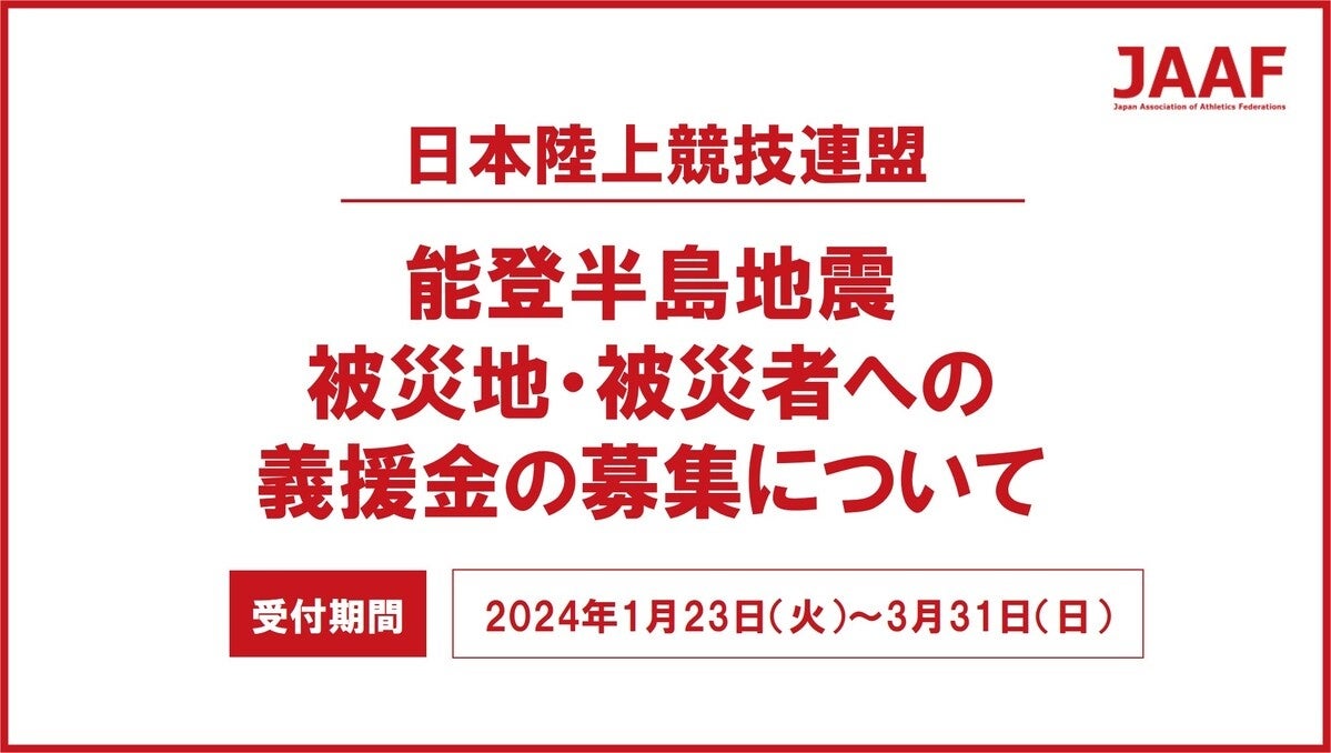日本陸上競技連盟では、陸上界として被災地および被災された方々の支援、災害対応や復興のお役に立てるよう、義援金を募集します。
