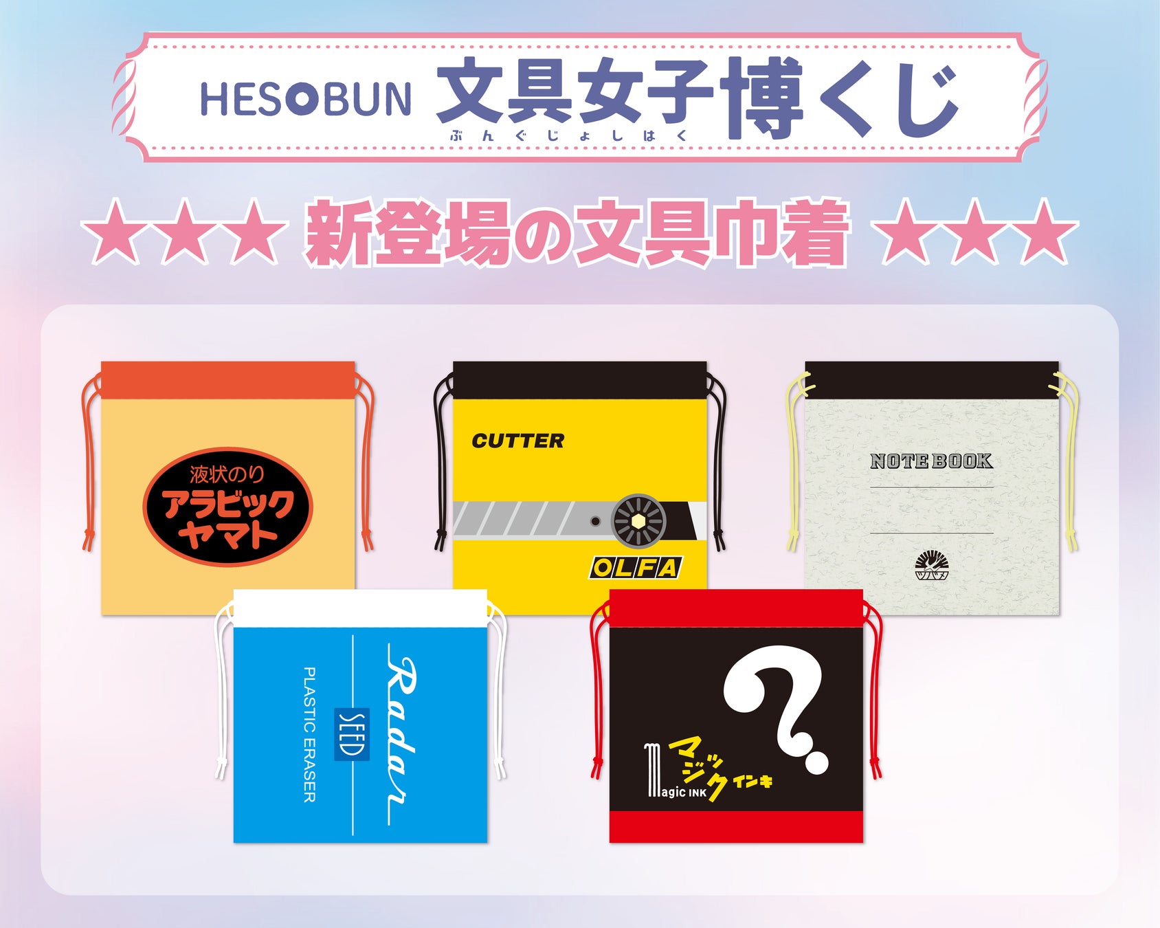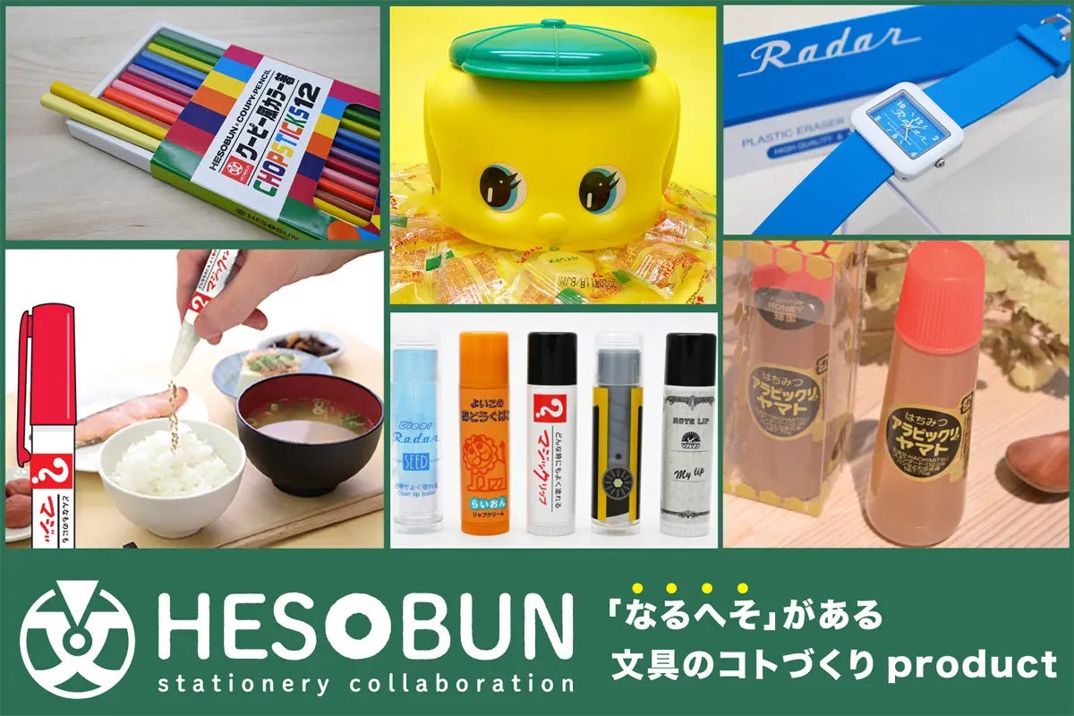 マジックインキ、フエキ糊、シード(Radar)、デビカ(よいこのおどうぐばこ)、ツバメノート、アラビックヤマト、オルファ、三菱鉛筆など、文具メーカーブランドとのコラボによる「なるへそ!」な企画商品「へそ文-HESOBUN-」シリーズを展開。