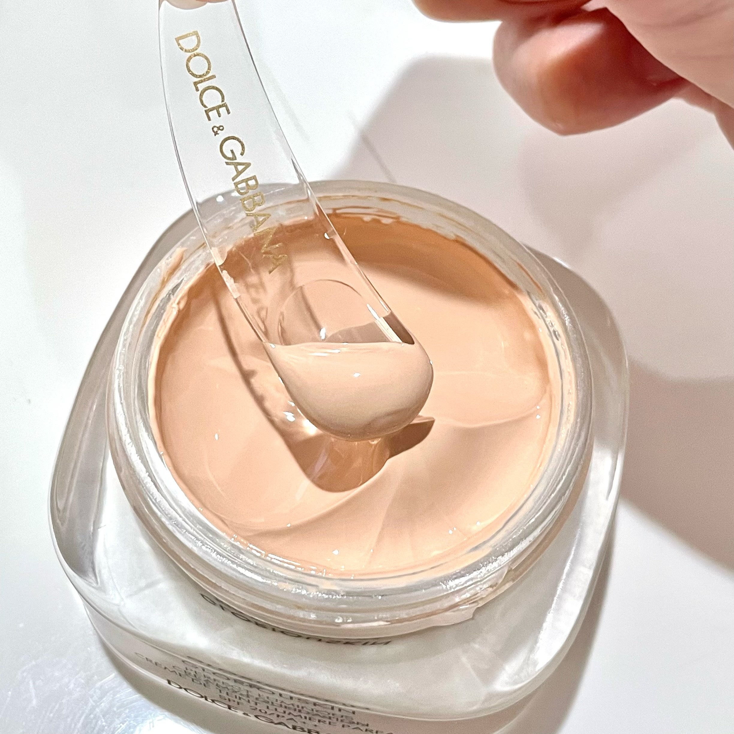 まずは、ドルガバコスメの中でも、1番リッチなクリームファンデーション「グロリアスキン パーフェクトルミナス クリーミーファンデーション」。見た目のゴージャスさ、重厚感には誰もが心を奪われる事でしょう。中身の優秀さはもちろん、一度使えば虜になる事間違いないファンデーションです。