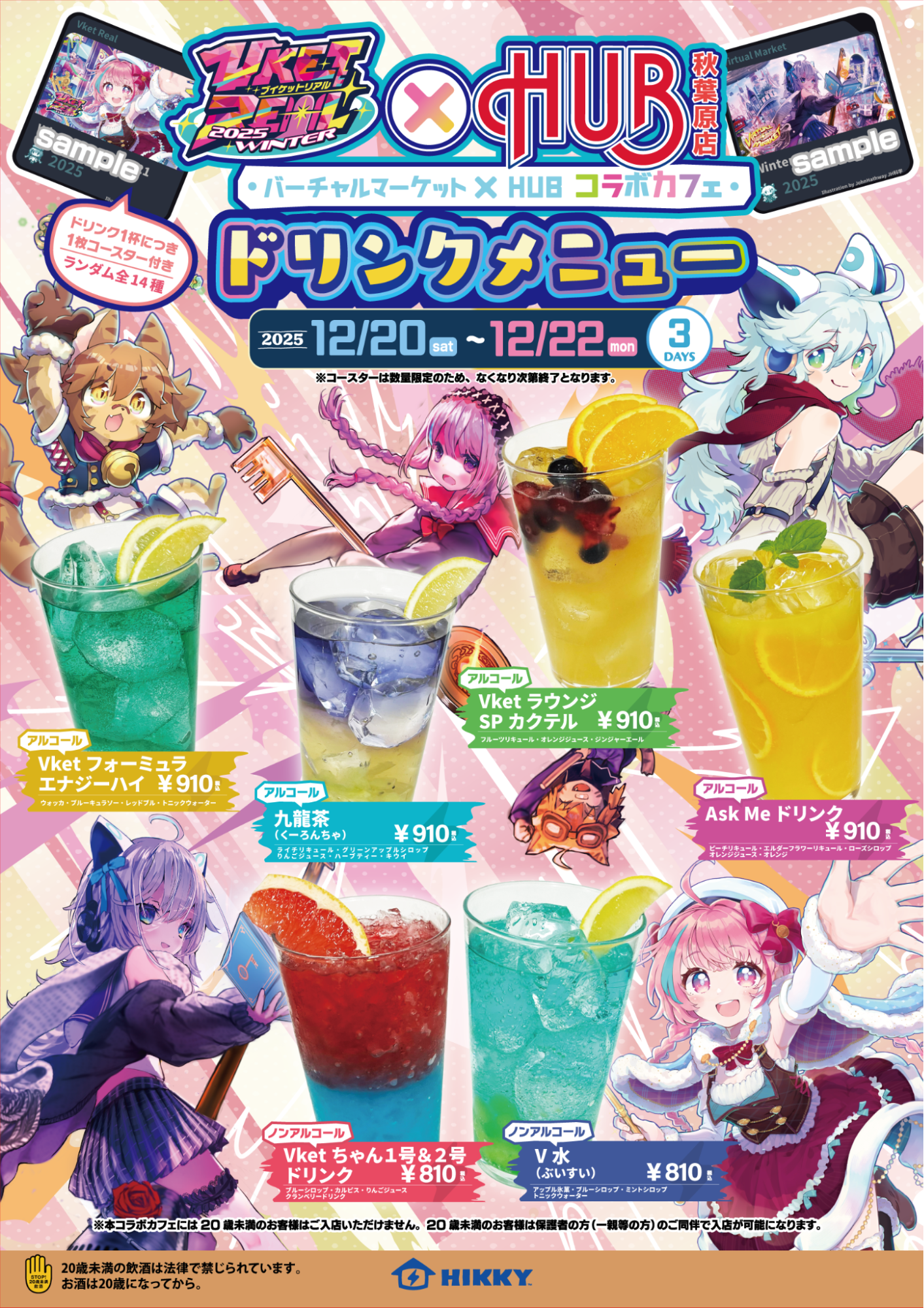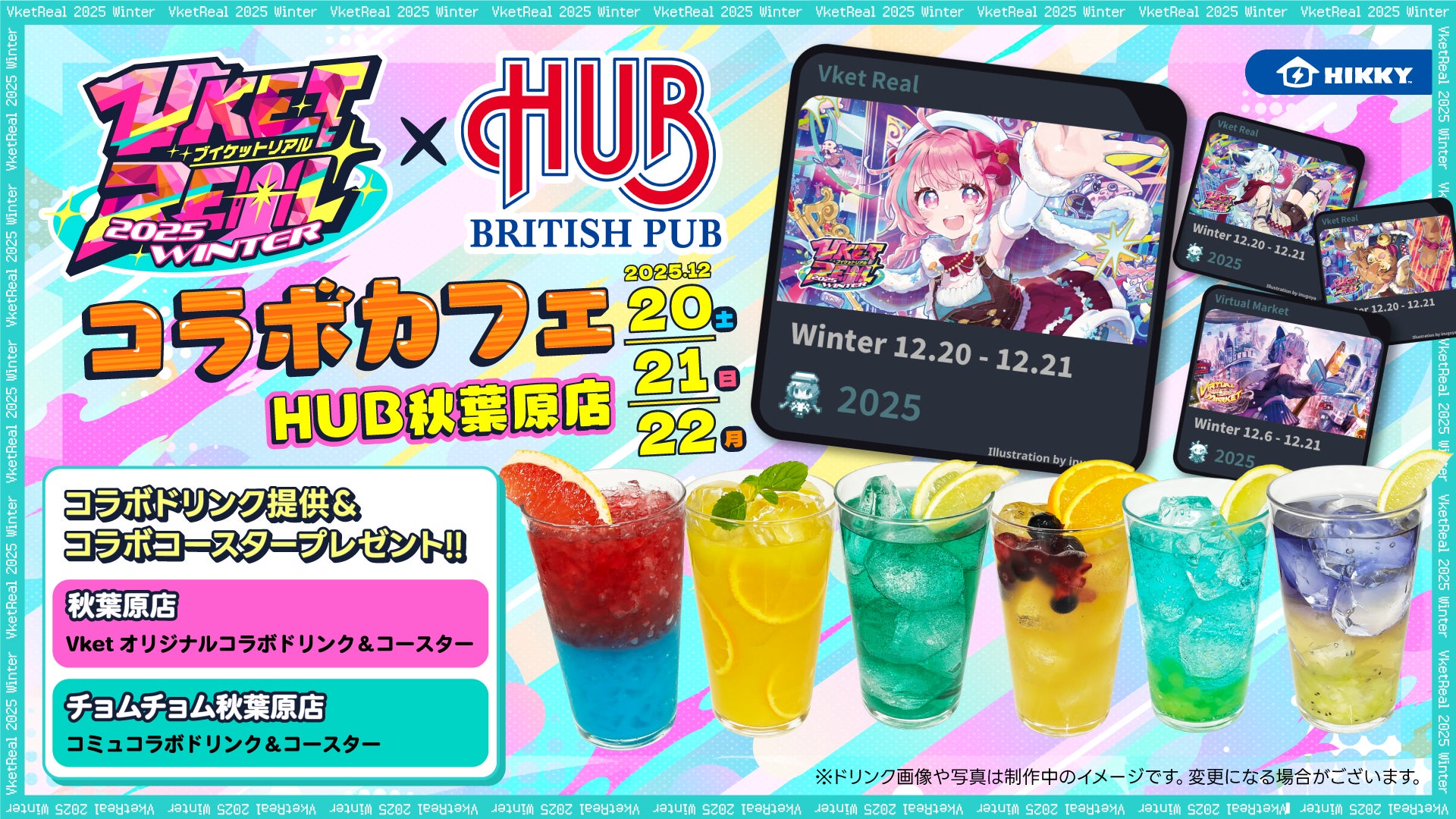 今回は「HUB秋葉原店」にて、VketやVRChatの世界観をモチーフにした特別なコラボドリンクが登場。バーチャルの熱狂をそのままグラスに詰め込んだ、ここでしか味わえないドリンクをぜひお楽しみください。