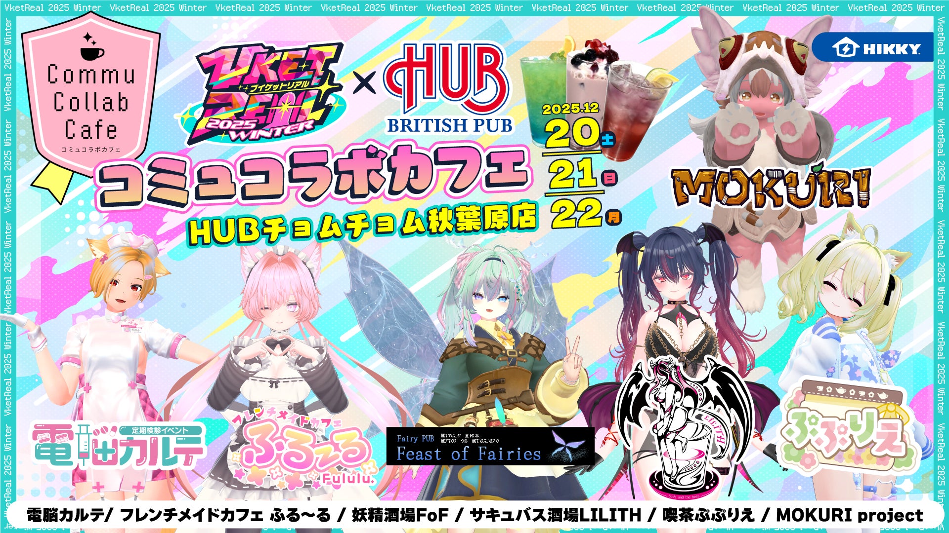 さらに「HUBチョムチョム秋葉原店」では、前回好評だった「コミュコラボカフェ」の第2弾を実施。バーチャルで活躍するコミュニティと実店舗がコラボし、各コミュニティの個性が詰まった特別なドリンクをお楽しみいただけます。