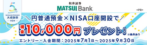 ■MATSUI Bank円普通預金&NISA口座開設で現金10,000円プレゼントキャンペーン