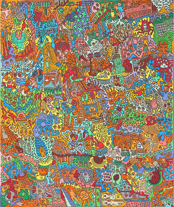 1977年生まれ。彼が真っ白いキャンバスに表現するのは、0.03から0.7mmまでのペンで描く唯一無二の個性豊かなキャラクター達。それぞれ表情や格好が違い、画面の中で踊っているように表現される。