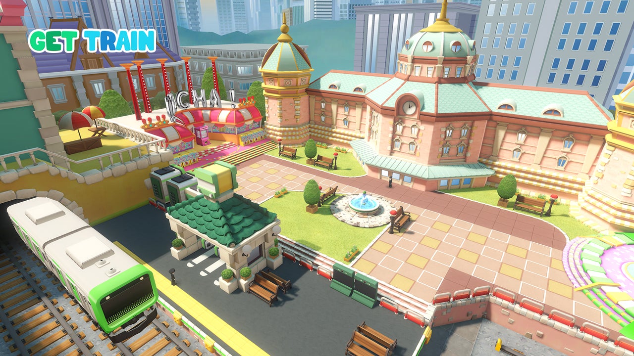 ワールド内にある改札機を通り、電車に乗ることで、さまざまな駅や街へ移動し、駅のホームや街の中をめぐることで、エネルギーを獲得できます。友達と協力してプレイすると多くのエネルギーが獲得できる場所もあります。