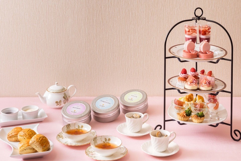 お花見の季節にぴったりのアフタヌーンティー。パティシエおすすめの桜のジュレとホワイトチョコレートムースは、ジュレとムースが相性抜群。添えられた桜の花びらの塩気がアクセントとなり、ホワイトチョコレートムースの優しい甘さを引き立たせます。その他にも、桜といちごの華やかな香りが広がる桜のジュレと苺のジュレや、淡いピンク色の桜マカロンが乗った桜のマカロンと苺ガナッシュタルトなど、見た目はもちろん、桜の香りと味わいが満喫できるスイーツをご用意いたしました。さらに、カブとサーモンのマリネや、春キャベツとあさりのスープなど、季節の食材を使用し、セイボリーでも春の訪れを感じていただける内容です。吉祥寺に本店をおく「ティーマーケットジークレフ」のこだわりの紅茶とともに、お花見気分に浸りながら、ティータイムをお過ごしください。