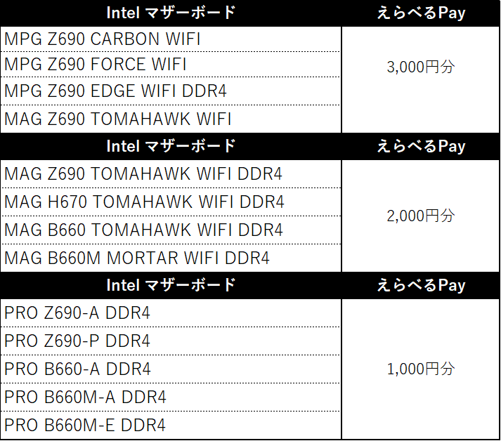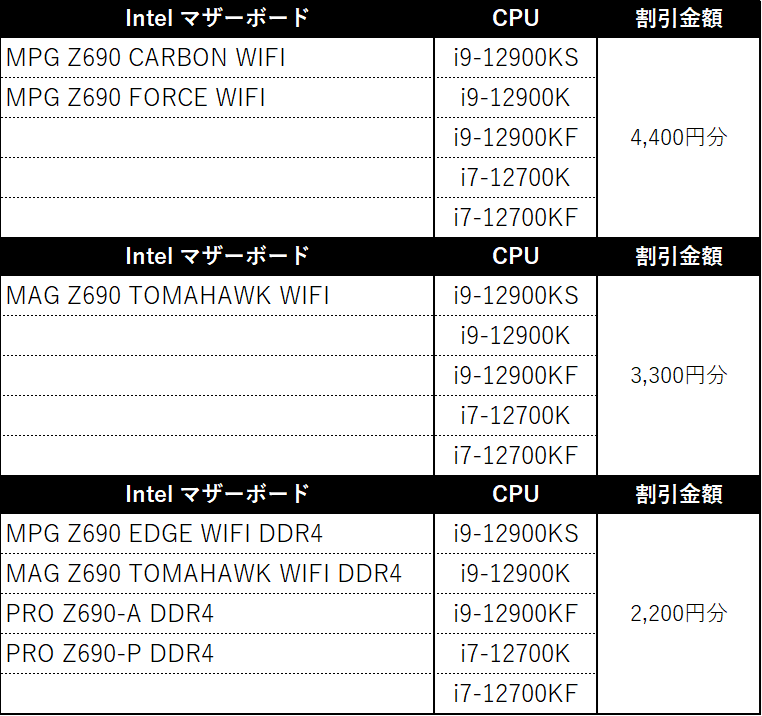 【GW Intel CPUバンドルキャンペーン2022の対象製品】
