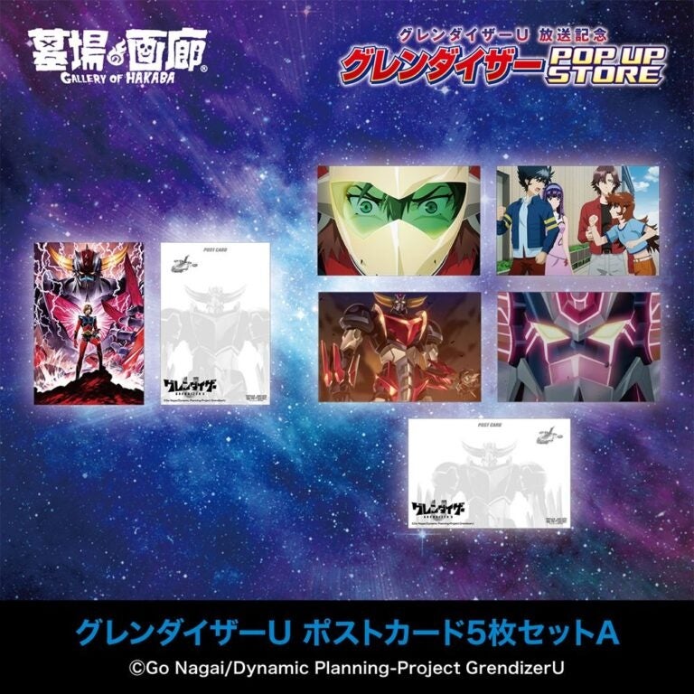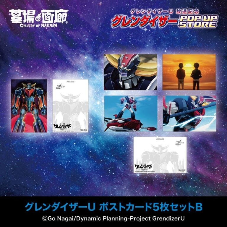 グレンダイザーのインパクトと衝撃を含む5枚のポストカードをセットでお届けだ。
