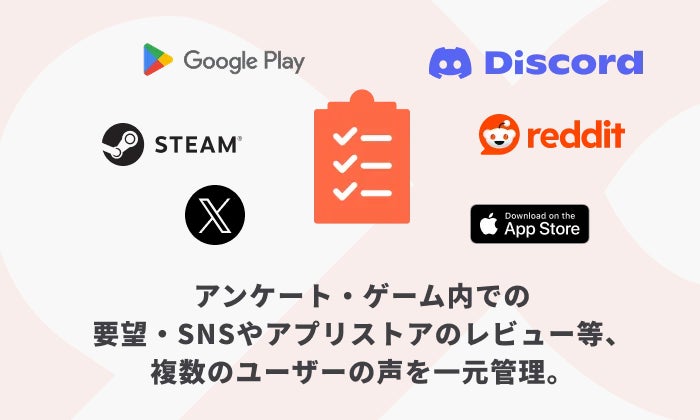 SNS(X、Discord、steam、reddit)、マーケットプレイス(Apple Store、Google store)、カスタマーサポートにきているユーザーの意見を自動分析が可能です。時系列で追えることにより変化が見つけるやすく、適切なアクションプランの実行へ繋がります。 |
